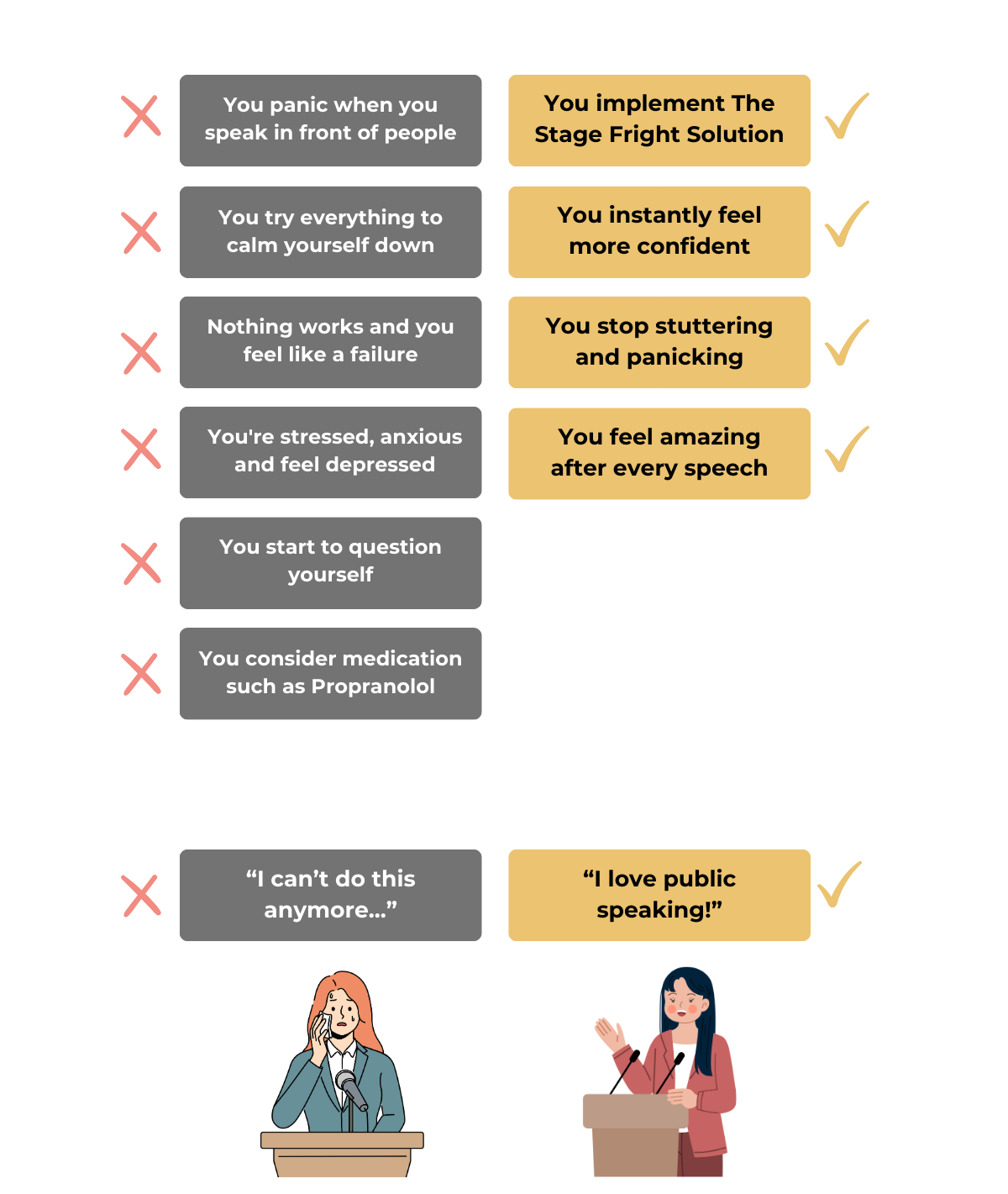 Don't let speaking anxiety hold you back any longer. Join thousands of others who have transformed their fear into confidence with The Stage Fright Solution. Your future self will thank you!